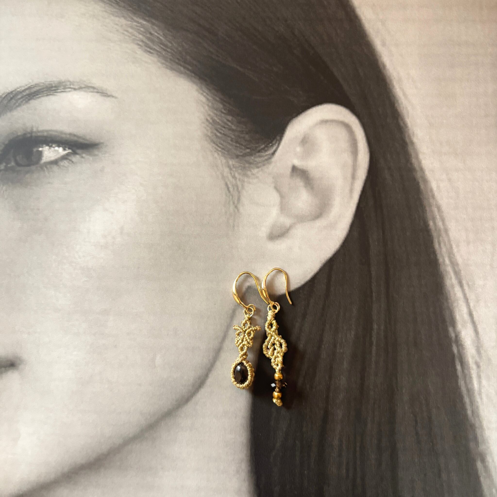 マクラメピアス スモーキークォーツ